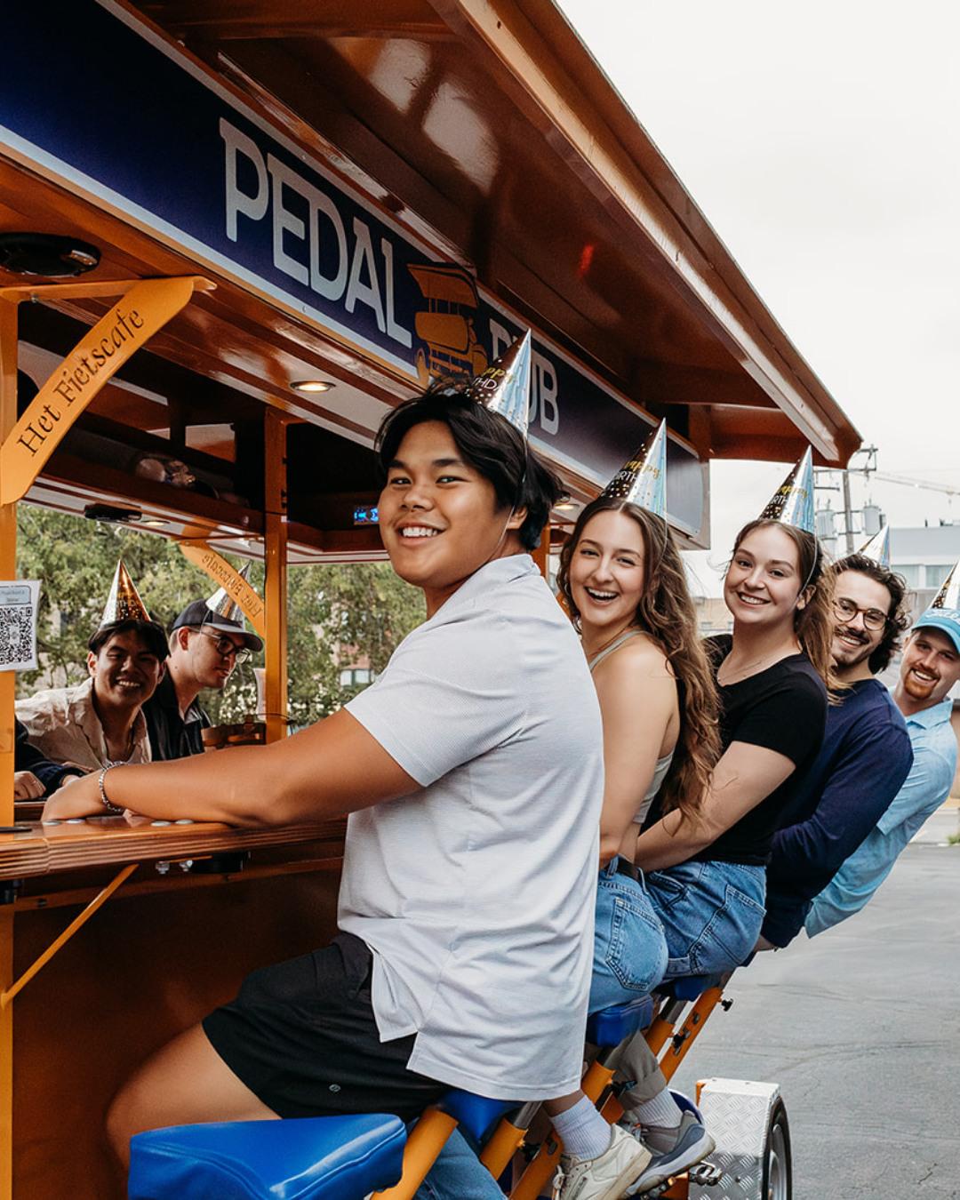 Whether it’s your special day or you’re planning a party for someone else, you’re sure to find the excursion you’re looking for with Pedal Pub. Our tours are one of the top-rated things to do for your birthday and are highly customizable! Reserve a private party bike or book individual seats from one of our destination tours, or request a custom tour to build your own route.